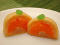 地元の女子高生たちのアイデアから生まれました。愛媛県、地元、佐田岬産の温州みかん(樹上で完熟させた薄皮のみかん)を当店自慢の白あんで包んだ、手のひらサイズの大福です。